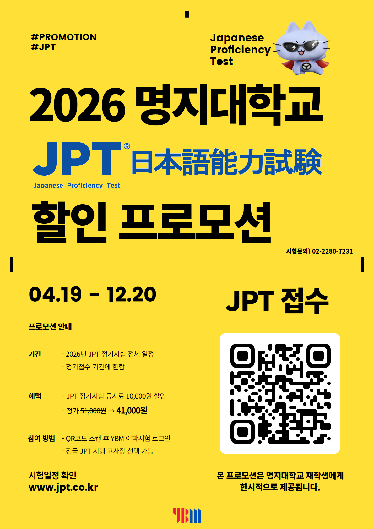 명지대학교 재학생 대상 2026년 JPT정기시험 접수 응시료 할인 이벤트