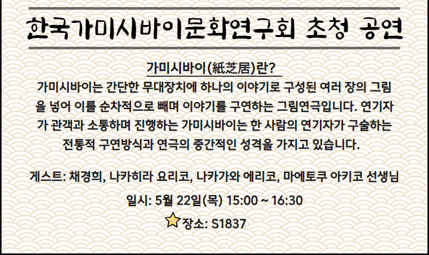 작년에 이어 올해도 한국가미시바이문화연구회에서 주최한 가미시바이 초청 공연이 있었습니다.