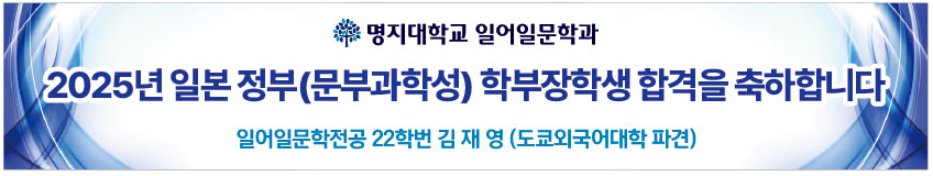 일어일문학전공 22학번 김재영 학생이 2025년 일본 정부 학부장학생으로 선정되어 도쿄외국어대학에 파견가게 되었습니다.