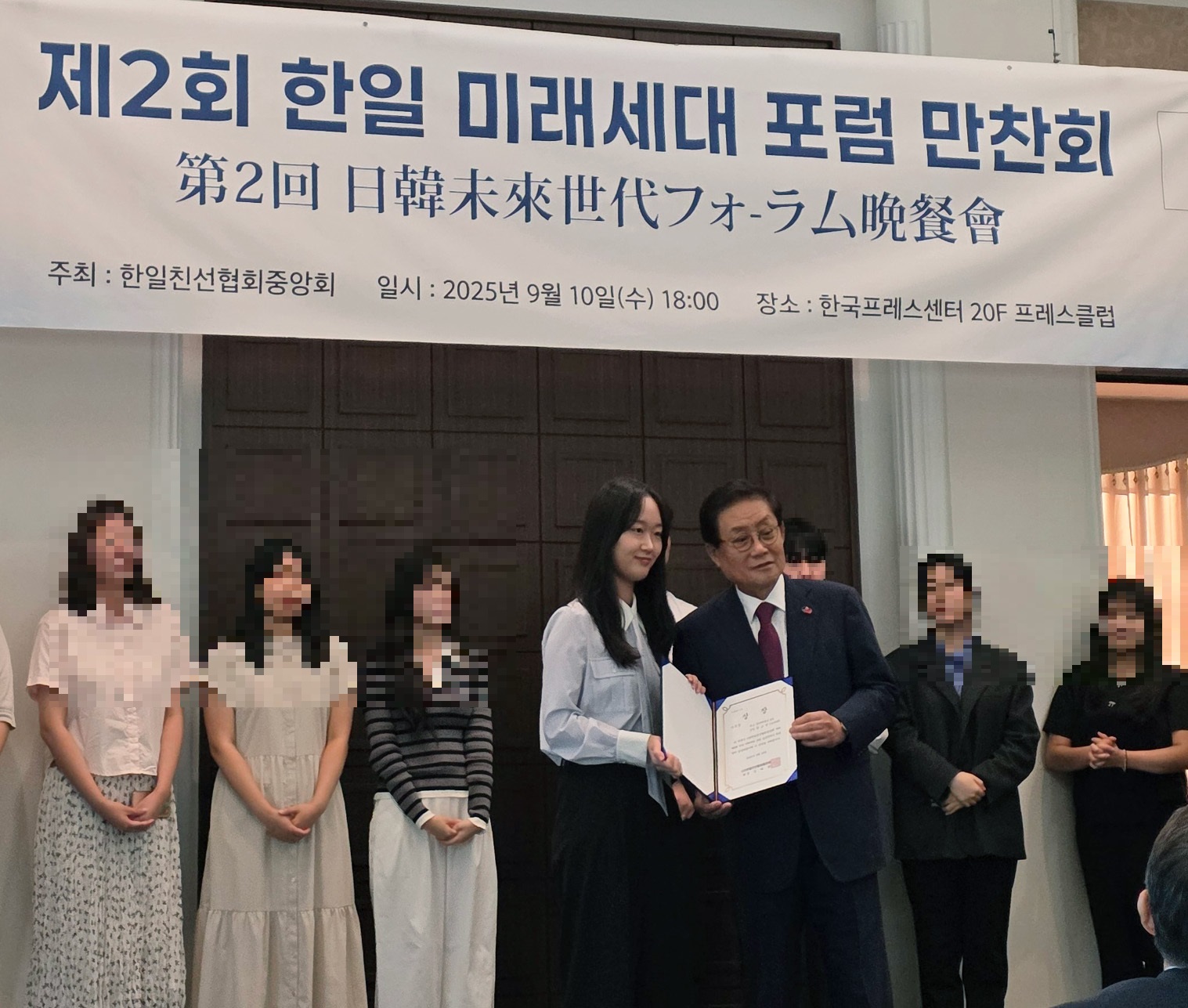 명지대학교(총장 임연수) 일어일문학전공 문소진(24학번) 학생이 한일친선협회중앙회가 주최한 「제2회 한일 미래세대 포럼」에서 최고상인 '우수상'을 수상했다.