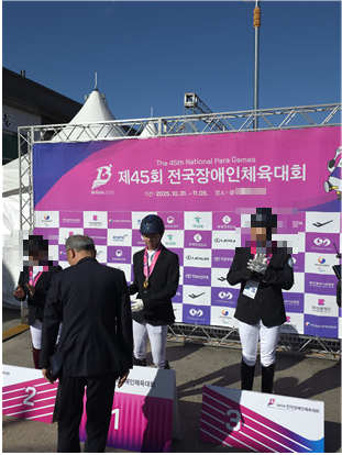 지난 10월 31일~11월 2일, 상주국제승마장(경상북도 상주)서 열린 제45회 전국장애인체육대회 승마 종목에 참가한 허준호(명지대학교 일어일문학과 22학번) 학우가 압도적인 기록으로 금메달을 획득했다. 이로써 허준호 학우는 4연패의 기록을 달성하며, 국내에는 적수가 없음을 증명했다.