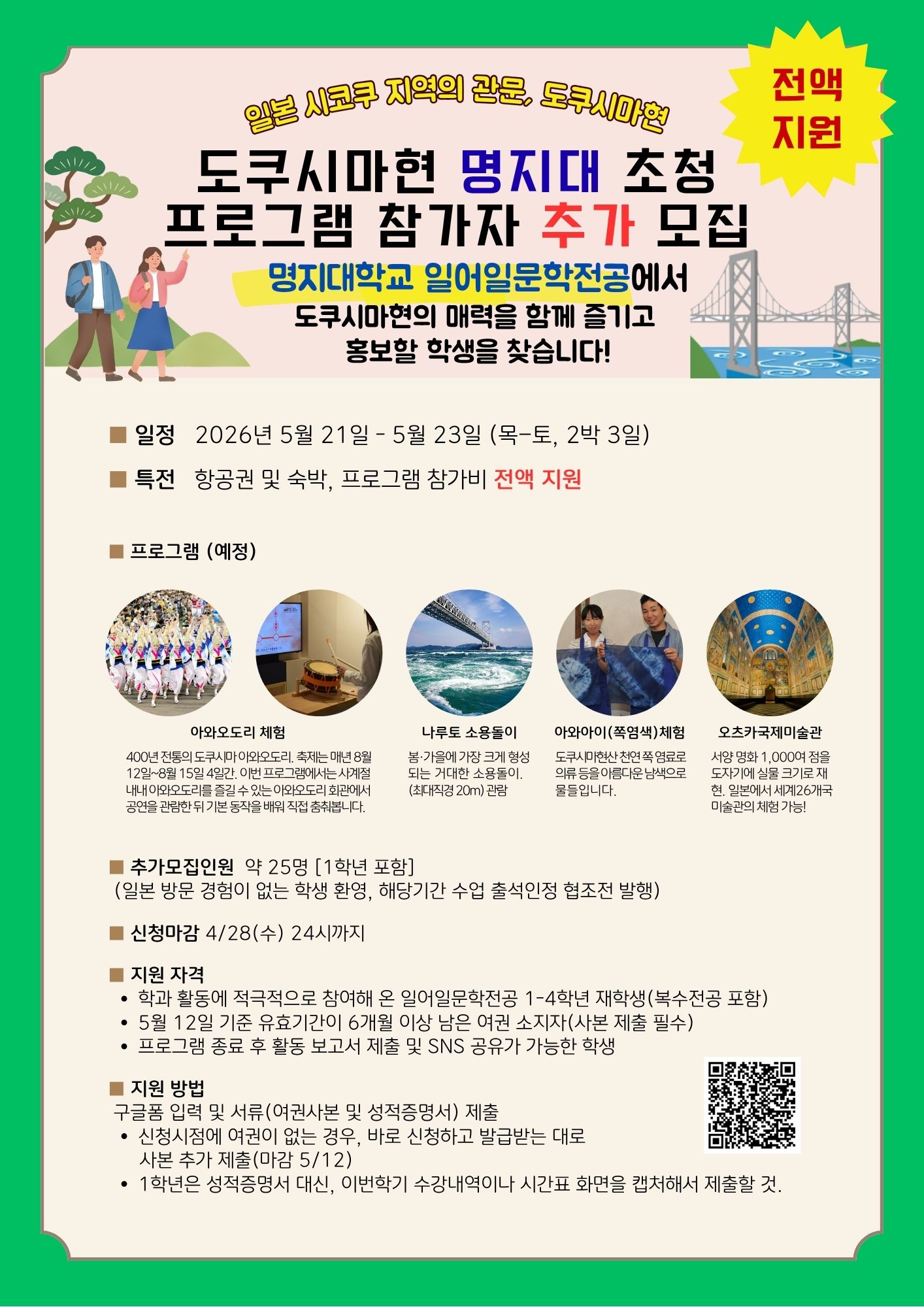 도쿠시마현 2차 파견 프로그램 추가모집(1학년 포함)